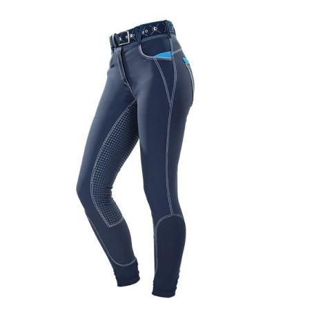 Nowatorskie i efektowne bryczesy damskie z pełnym lejem pokrytym silikonem COMFiSTICK®, którego unikalna struktura zapewnia maksymalny komfort i przyczepność podczas jazdy. Ozdobione wstawkami i przeszyciami w kontrastującym kolorze oraz odblaskową wypustką.