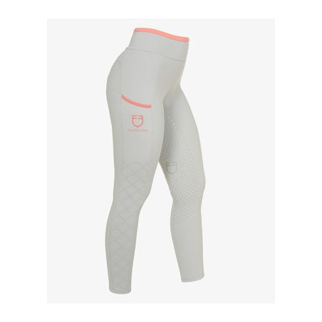Całkiem nowa, letnia odsłona znanych i lubianych legginsów jeździeckich! Poczuj pełen komfort z idealnie dopasowanymi legginsami włoskiej firmy Equestro. Wykonane bardzo elastyczne, wykonane z najwyższej jakości technicznych materiałów, które regulują temperaturę ciała i nie krępują ruchów. Oddychające, przyjazne dla skóry, nogawki z wstawkami z laserowo wycinanymi dekorami znakomicie sprawdzą się w upalne dni podczas treningów. Niezwykle elastyczne, przez co doskonale dopasowują się do ciała. Pełny lej silikonowy, nie tylko nadaje im oryginalności, ale przede wszystkim zapewnia stabilność w siodle. Wyposażone w wygodną kieszonkę na telefon, która znajduje się na prawym udzie. Wysoki stan legginsów pięknie podkreśla sylwetkę i znakomicie dopasowuje się do kobiecych kształtów. Subtelne akcenty z logo Equestro przyciągają wzrok, dodatkową ozdobą są kontrastujące lamówki