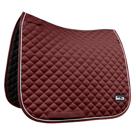 Klasyczny czaprak wykończony srebrnym pipingiem, podszyty oddychającym i łatwym w praniu podszyciem z siateczką.
