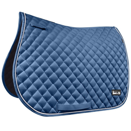 Klasyczny czaprak wykończony srebrnym pipingiem, podszyty oddychającym i łatwym w praniu podszyciem z siateczką.