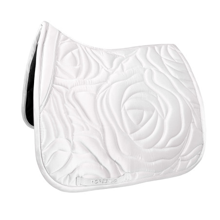 Elegancki czaprak ujeżdżeniowy o anatomicznym kroju, doskonale dopasowującym się do końskiego grzbietu.