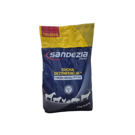 Zapewnia BEZPIECZEŃSTWO i MAKSYMALNĄ OCHRONĘ przed bakteriami, wirusami, pasożytami i grzybami. Niszczy stadia larwalne much i innych owadów znacząco redukując ich liczbę. SANDEZIA działa szczególnie w zawilgoconych pomieszczeniach. Intensywnie osusza mokrą ściółkę zapobiegając przekształceniu się mocznika w amoniak i wydzielaniu się szkodliwych gazów. Preparat utrzymuje niskie pH, uniemożliwiając rozwój chorobotwórczych drobnoustrojów.