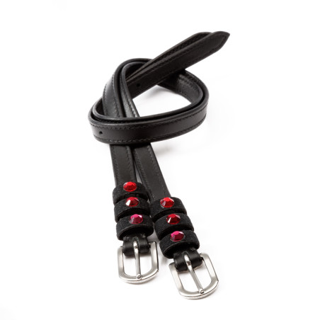 Wykonane z najwyższej jakości, miękkiej skóry. Bardzo wytrzymałe i odporne na uszkodzenia. Dodatkowo ozdobione trzema kryształkami w różnych kolorach. Wyposażone w srebrne sprzączki. Pięknie uzupełniają strój jeździecki i dodają blasku!