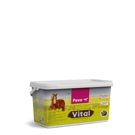 Pavo Vital to pasza mineralna w formie granulatu, niezawierająca zbóż i melasy, o bardzo niskiej zawartości cukru i skrobi (tylko 4,74%). Dzięki temu doskonale nadaje się dla koni i kucyków, które są wrażliwe na cukier lub otrzymują mało lub wcale nie otrzymują paszy treściwej. Składniki są prasowane w specjalny sposób, dzięki czemu struktura trawy tymotki i lucerny jest wyraźnie widoczna w granulacie.