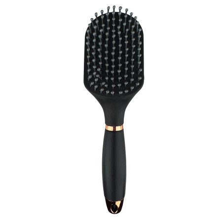 Praktyczna i wygodna szczotka z żelowym uchwytem, stworzona z myślą o pielęgnacji grzywy i ogona konia. Ergonomiczny, antypoślizgowy uchwyt z żelu zapewnia pewny i komfortowy chwyt nawet podczas długiego czesania. Szczotka dostępna jest w modnej czerni z eleganckimi elementami w kolorze różowego złota, dzięki czemu pięknie komponuje się z innymi produktami z serii Melody, tworząc spójną i stylową kolekcję akcesoriów jeździeckich.