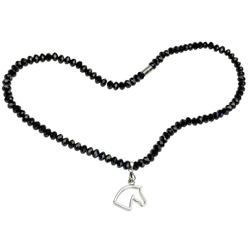Ozdobiony zawieszką w kształcie końskiej głowy.