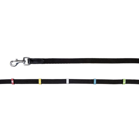 Wykonane z wytrzymałej taśmy parcianej. Wyposażone w kolorowe stopery. Posiadają karabińczyki ułatwiające mocowanie do wędzidła. Wykończone naturalną skórą bydlęcą.